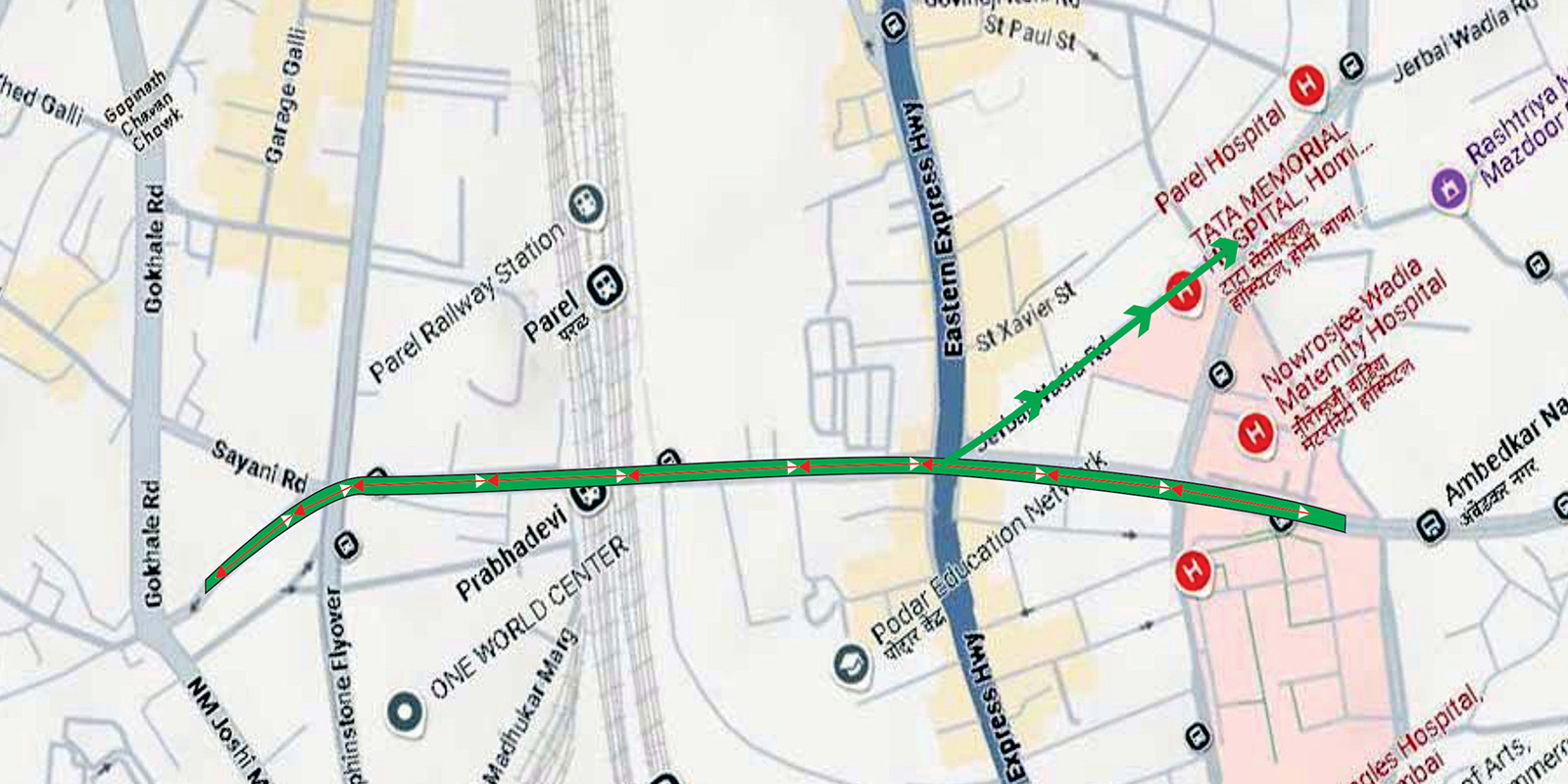 The simplest part of this triple decker is the actual Connector at the topmost level as is shown in the picture above. Observe the exclusive ramp down for the ambulances descending down on to the Jerbai Wadia Road.